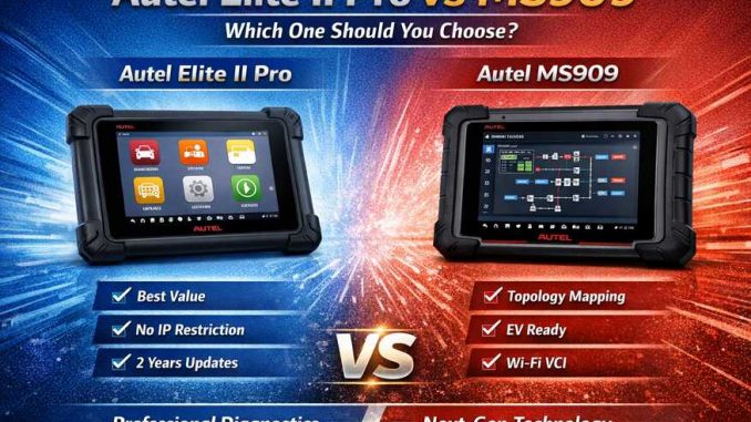 When choosing a premium diagnostic tablet, the Autel Elite II Pro and Autel MS909 are two of the most popular options. Both offer professional-grade diagnostics, ECU coding, and programming, but they are built for slightly different users. Your choice may depend on your shop’s workflow, budget, region, and whether you need advanced features like topology mapping or EV support.