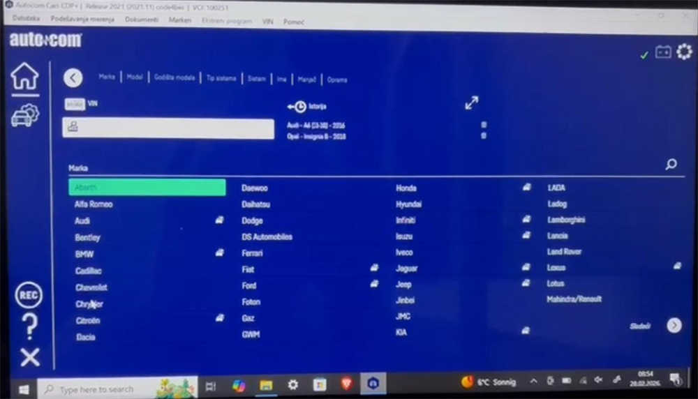 - Connect the Autocom interface and run the software again