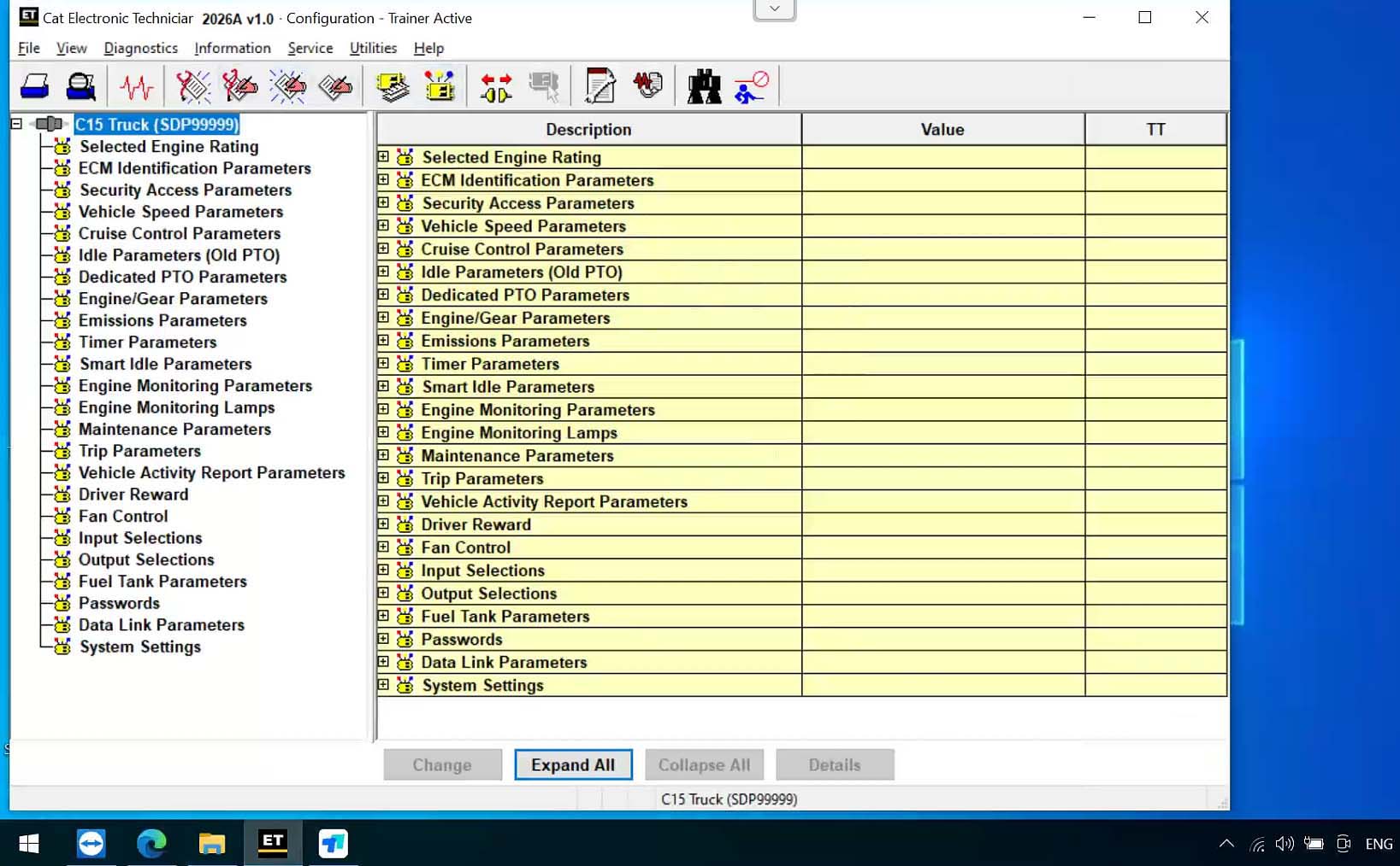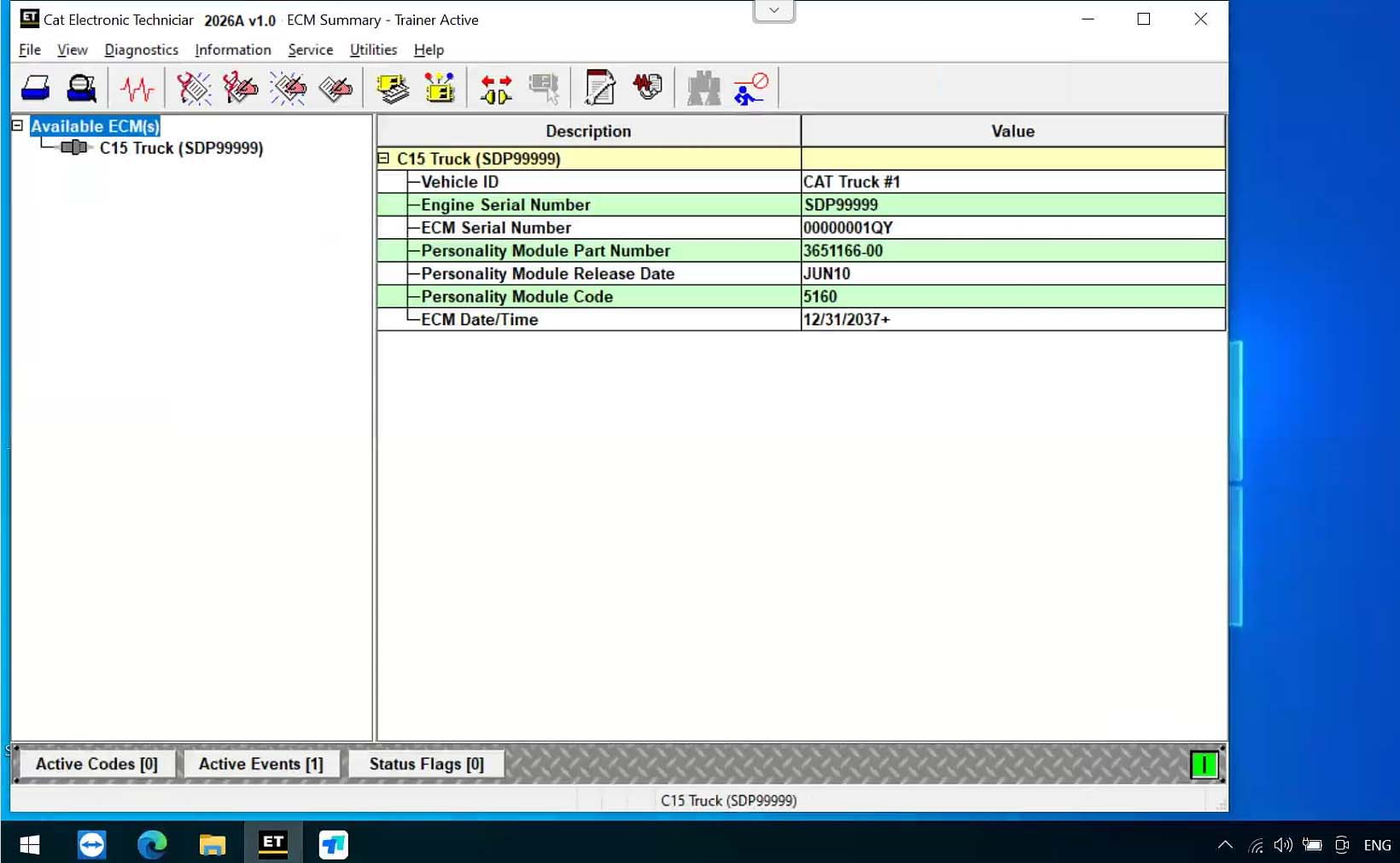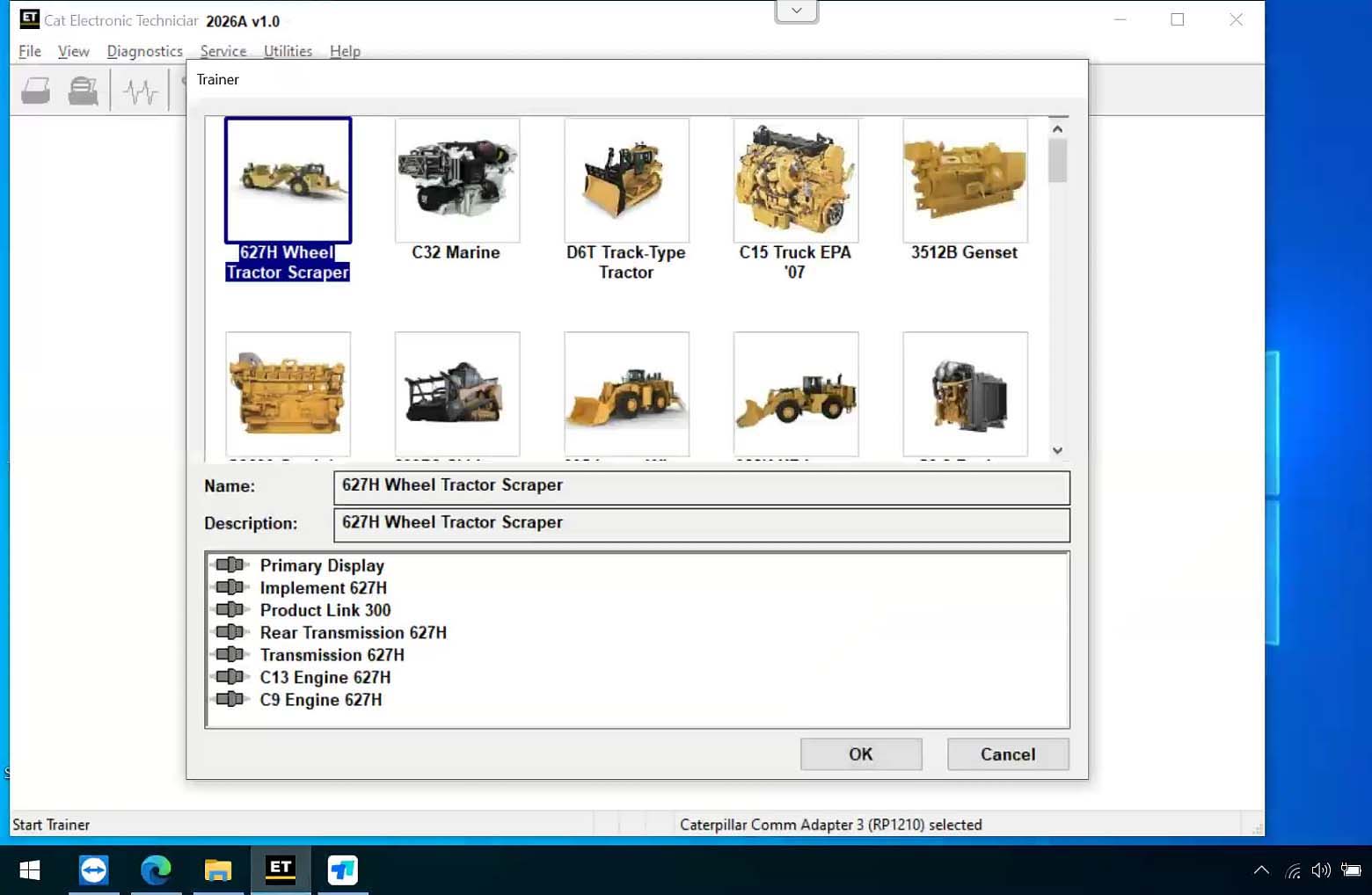 Caterpillar Electronic Technician (Cat ET) is diagnostic software required to communicate, diagnose and service electronically controlled Caterpillar engines and machines. When connected to an Electronic Control Module (ECM), a technician has the ability to diagnose existing and potential problems, configure the product, and obtain data for analysis.