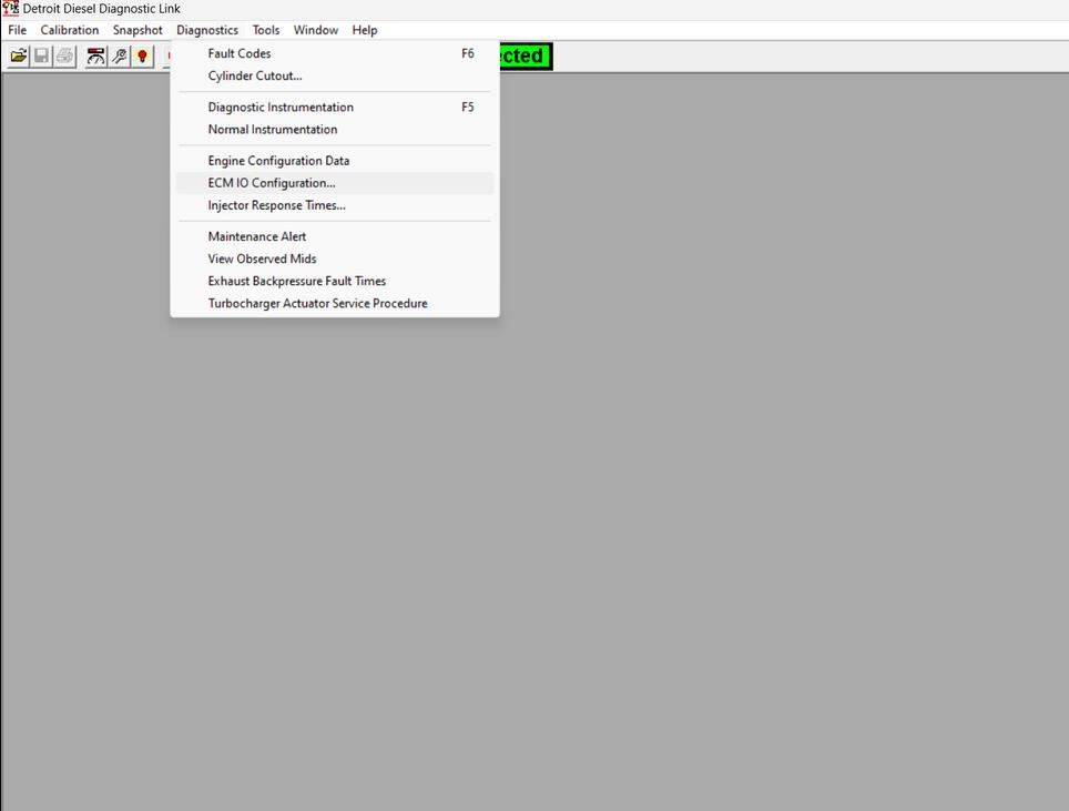 📌 Tip: Before accessing I/O Configuration, make sure your DDDL is properly connected to the engine ECM.