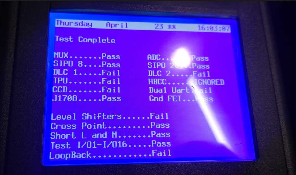 At first glance, these “FAIL” results suggest the VCI board (the heart of the Tech2) is faulty. However, because these tests involve a loopback through the RS232 cable, a loose COM port connection will cause the device to report a hardware failure even when the hardware is healthy.