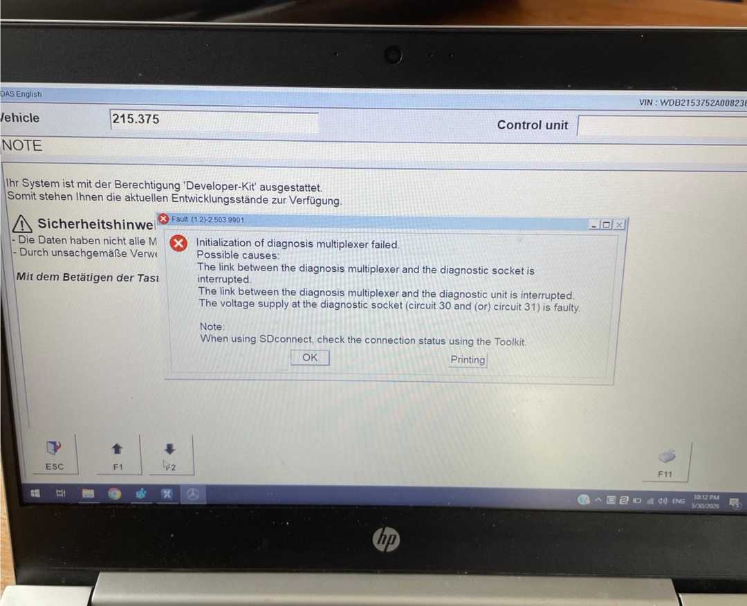 I bought Car MB Star Diagnostic Software Installed 256G SSD from OBDIISHOP , but when I try to diagnose my 55 amg it says broken cable from the multiplexer to diagnose unit.